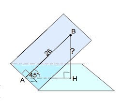 двугранный угол равен 45°. На одной грани двугранного угла дана точка B, расстояние от которой до ребра равна 26 см. Чему равно расстояние от точки B до второй грани двугранного угла