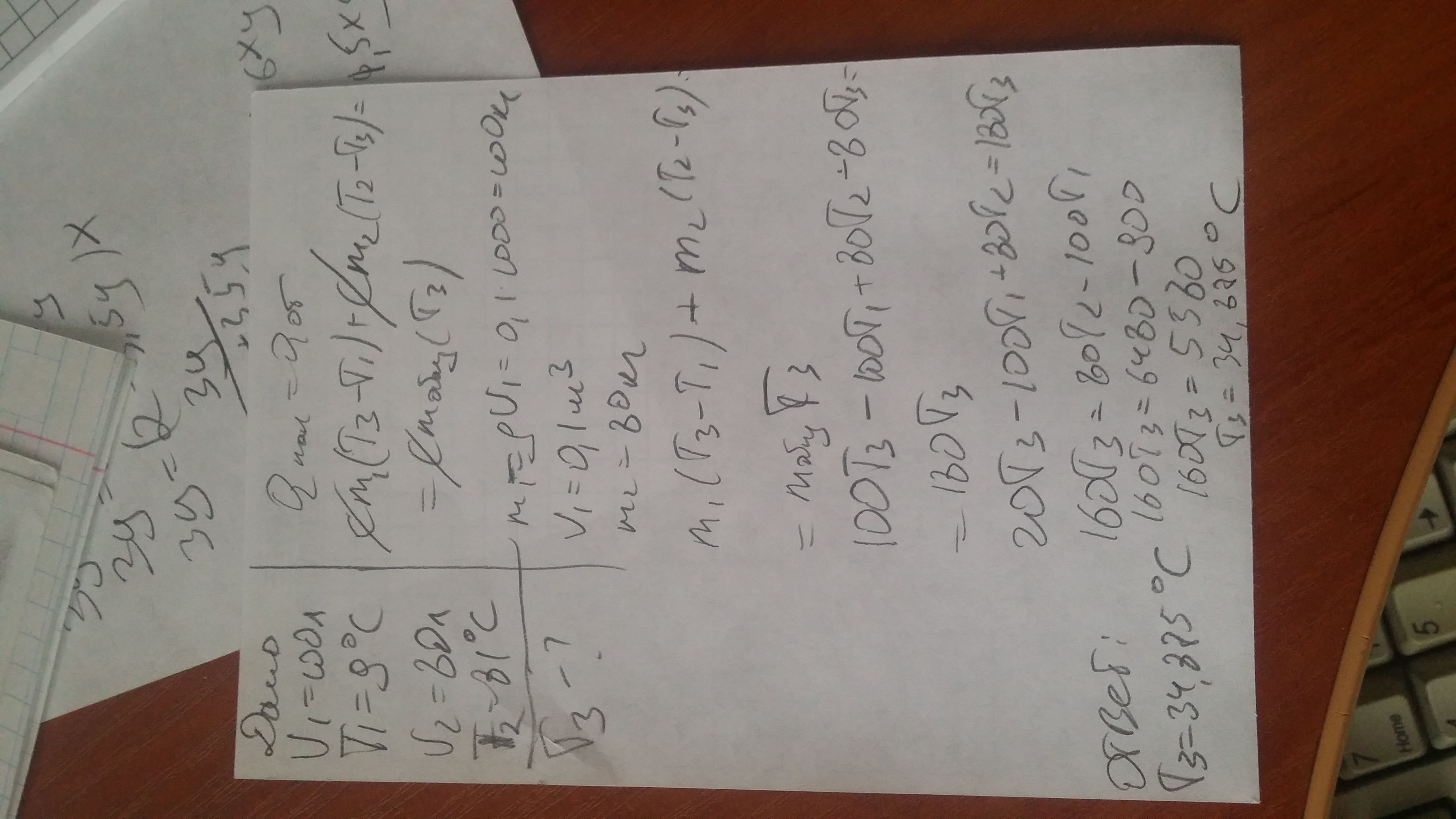 До ванни,де було 100 л води за температурой 9 градусів,додали гарячої води 80 л ха температурой 81 градус.Визначте температуру теплової рівноваги