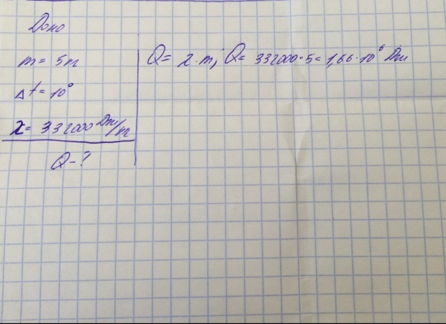 масса льда 5 кг, какое количество теплоты необходимо потратить для превращения льда в воду, если температура льда 10°