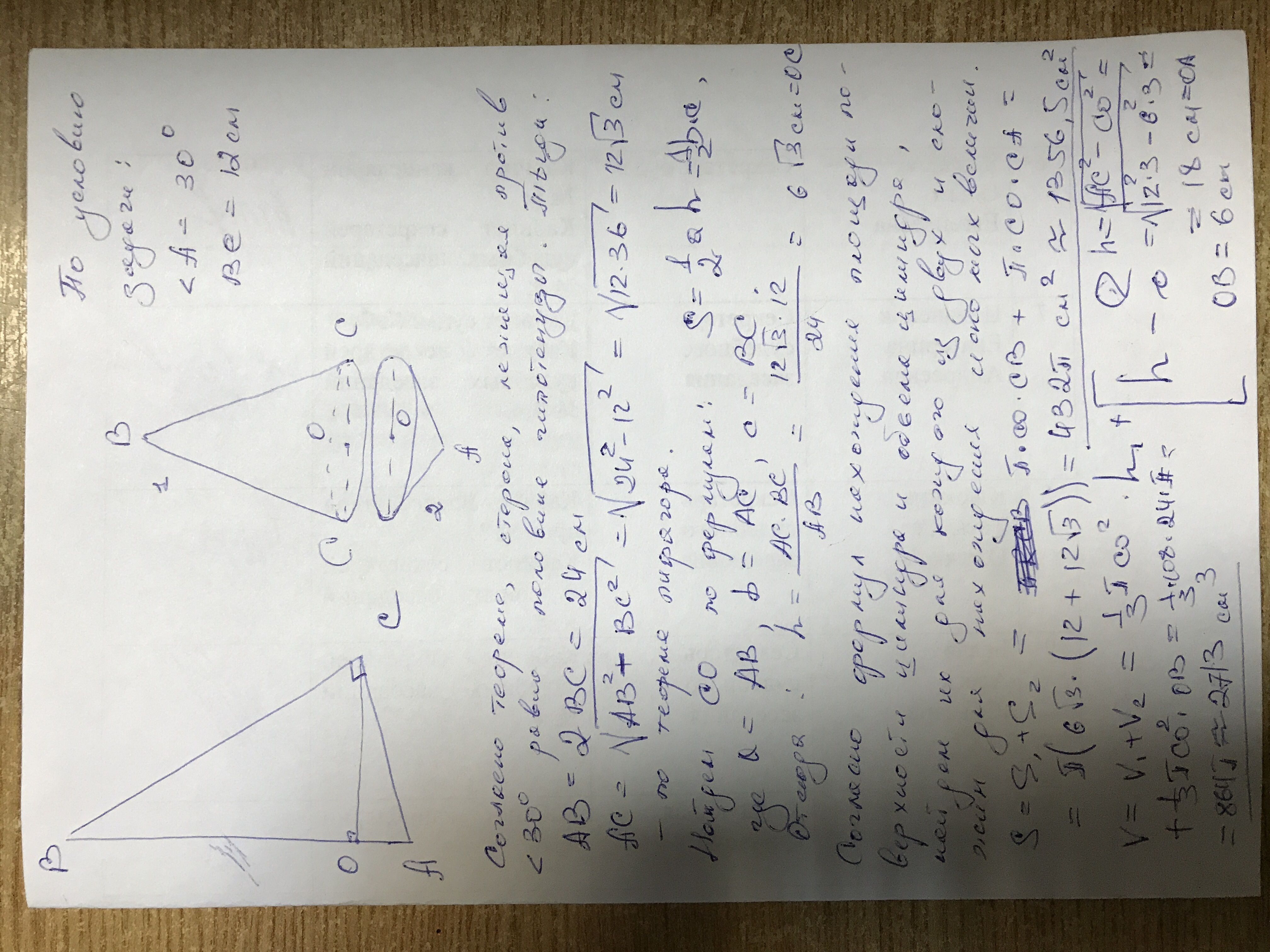 Решение на фото. Прошу прощения за почерк. В конце все налеплено друг на друга, т.к. Ясовершенно забыл найти длины ВО и ОА, которые я условно обозначил как h.