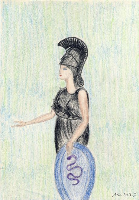 Так-с. Давай приложу картинку, а ты как-нибудь срисуешь. Миф можно выбрать Афина Паллада. Вот рисунок.