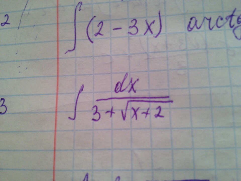 int 2u/(3+u) du = 2 int (u + 3 - 3)/(u+3) du = 2 int du - 6 int du/(u+3) = 2u - 6ln |u+3| + C
