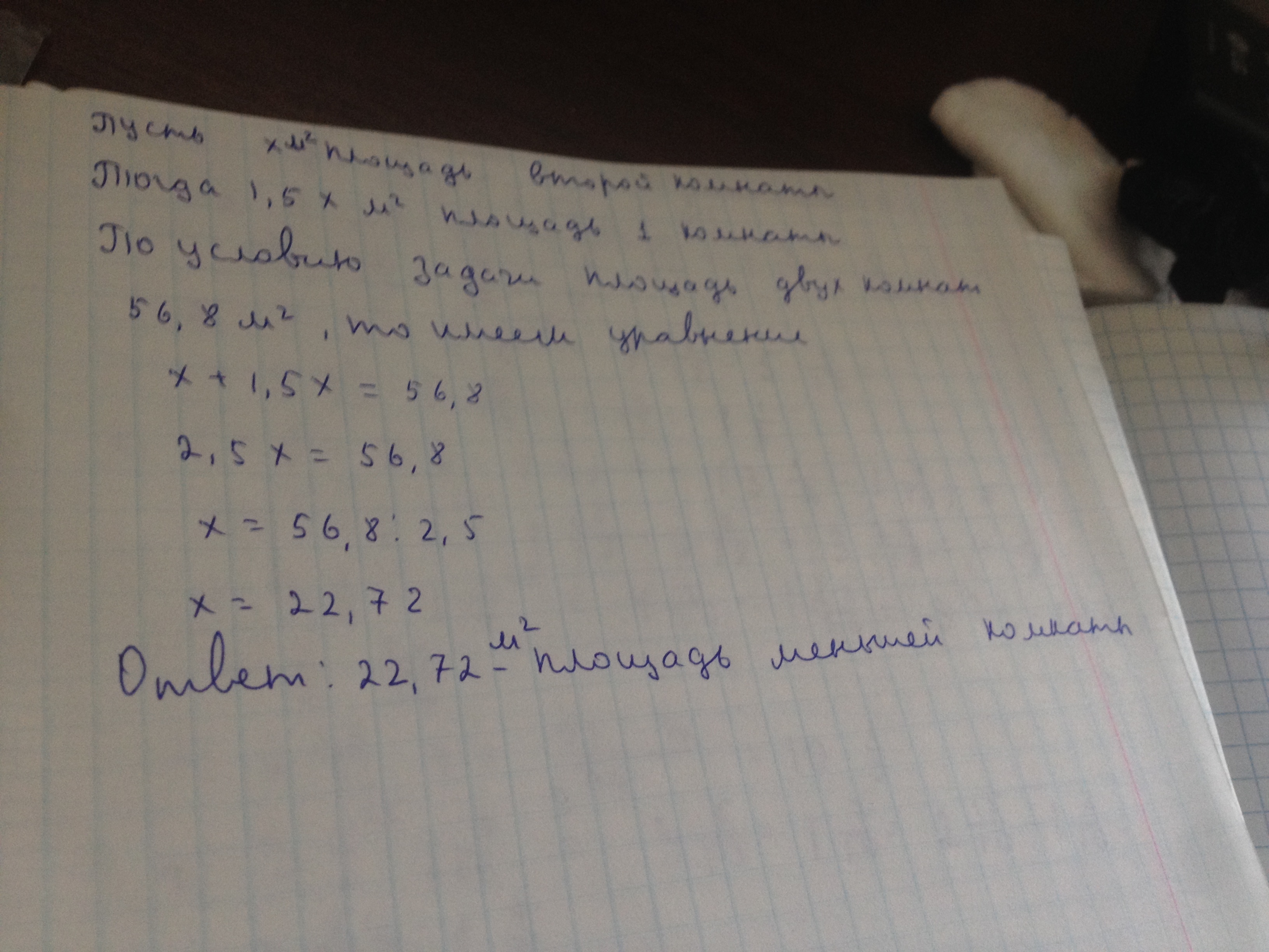 ) Площадь двух комнат 56,8 м2. Площадь одной комнаты в 1,5 раза больше площади другой. Найти площадь меньшей комнаты