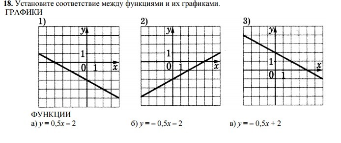 Установите соответствие между функциями и их графиками.