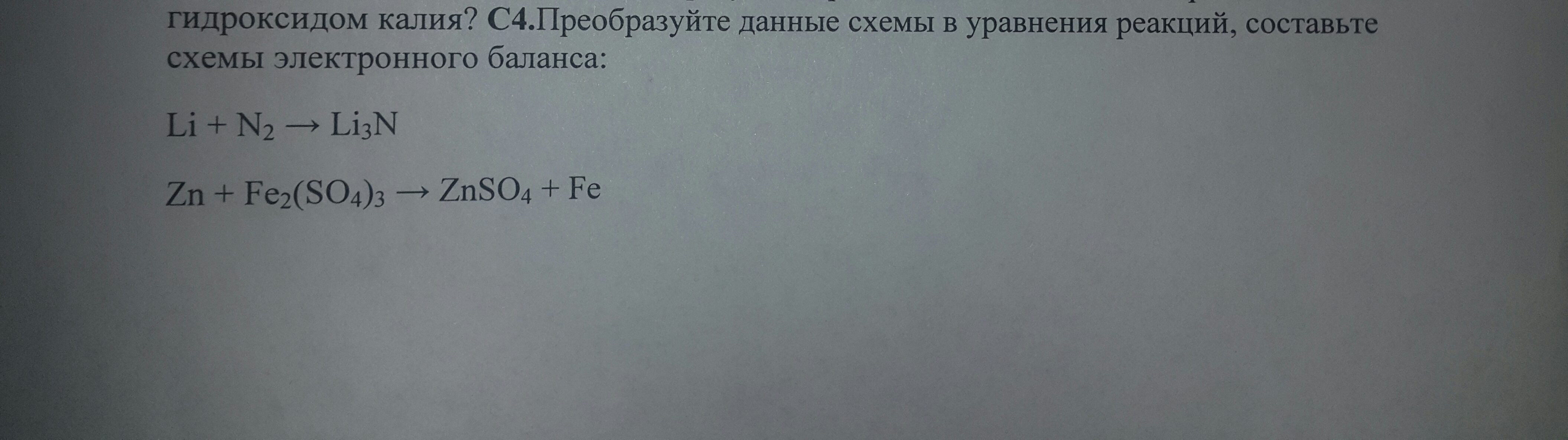 C4. Преобразуйте данные схемы в уравнения реакций, составьте схемы электронного баланса: