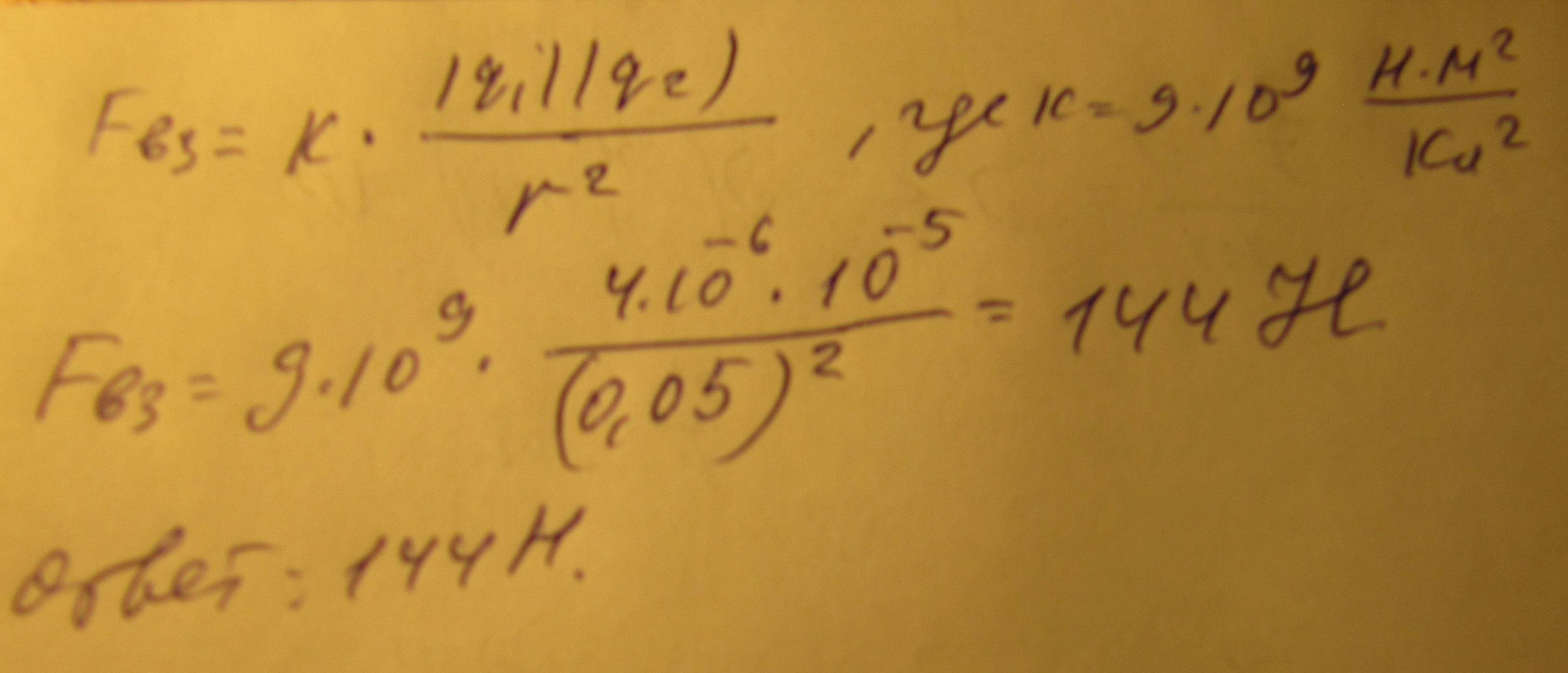 Два точечных электрических заряда q1=4 мкКЛ и q2=10мкКЛ находятся на расстоянии 5 см друг от друга. Определите силу взаимодействия двух зарядов Помогите пожалуйста