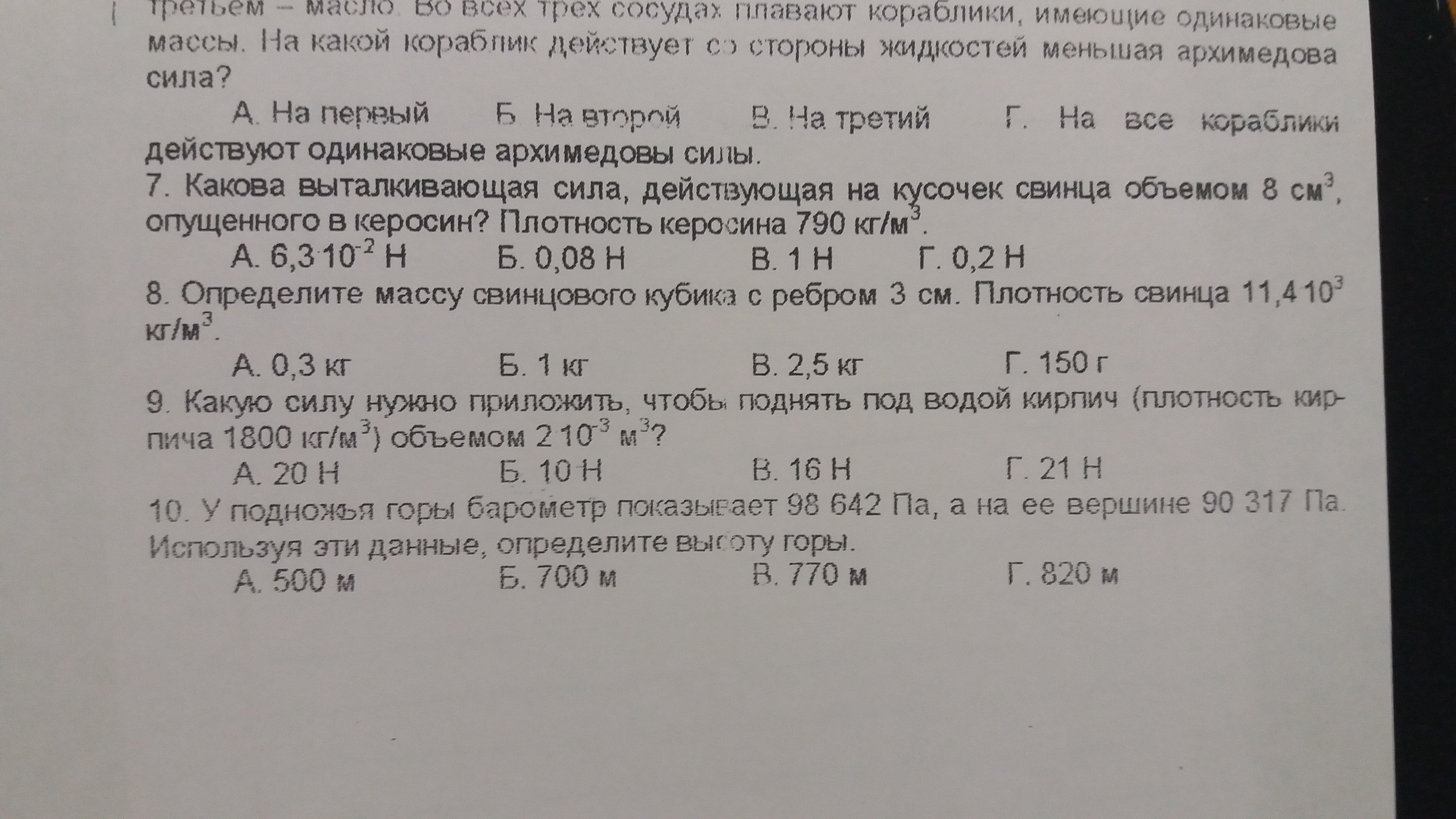2)находим силу Архимеда это и будет ответом, надо плотность воды умножить на объём кирпича и на ускорение свободного падения, в итоге будет 20 Н, ответ А