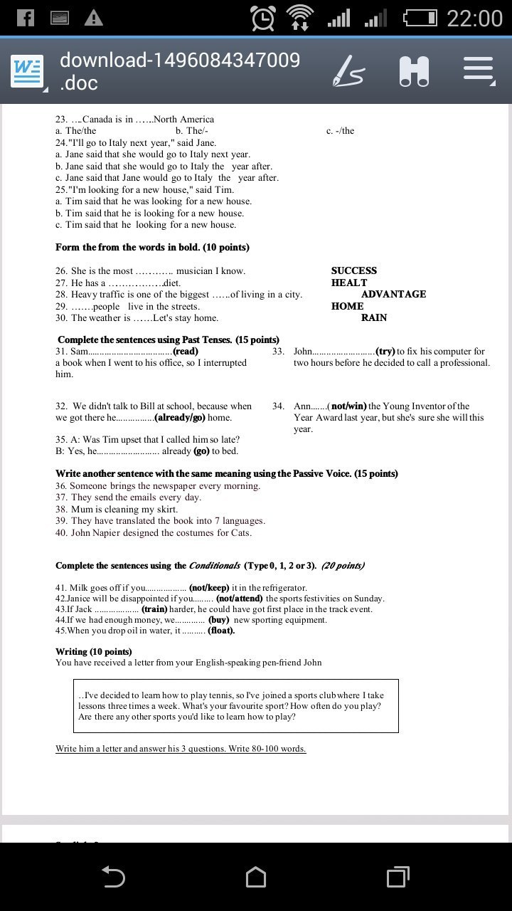 31-was reading, 32-had already gone, 33-had tried, 34-didn't win, 35-had already gone