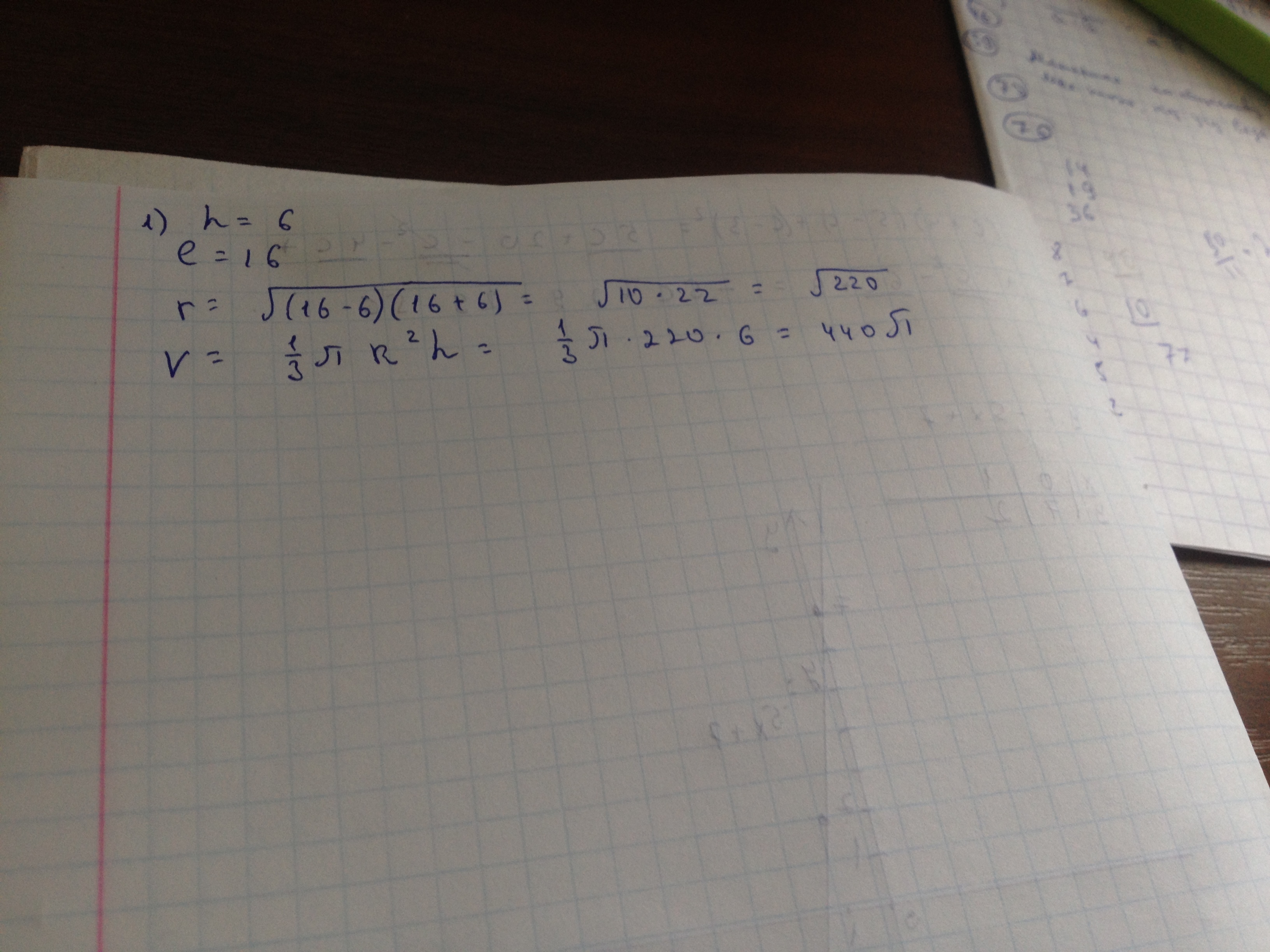 1. Высота конуса равна 6, образующая равна 16. Найти его объем
