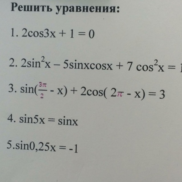 3)sin(3п/2-x)+2cos(2п-x)=3 по формуле приведения: