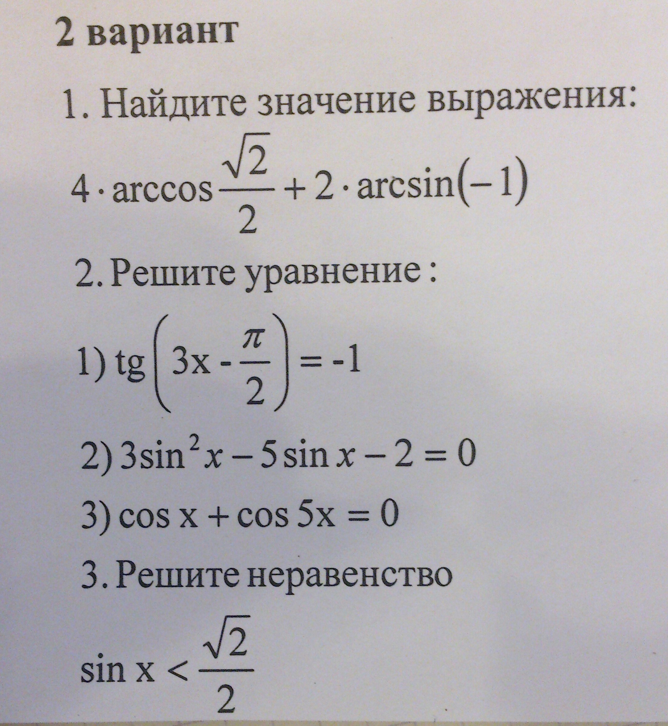 №1. 4* пи/4 +2* (-пи/2)=пи-пи=0