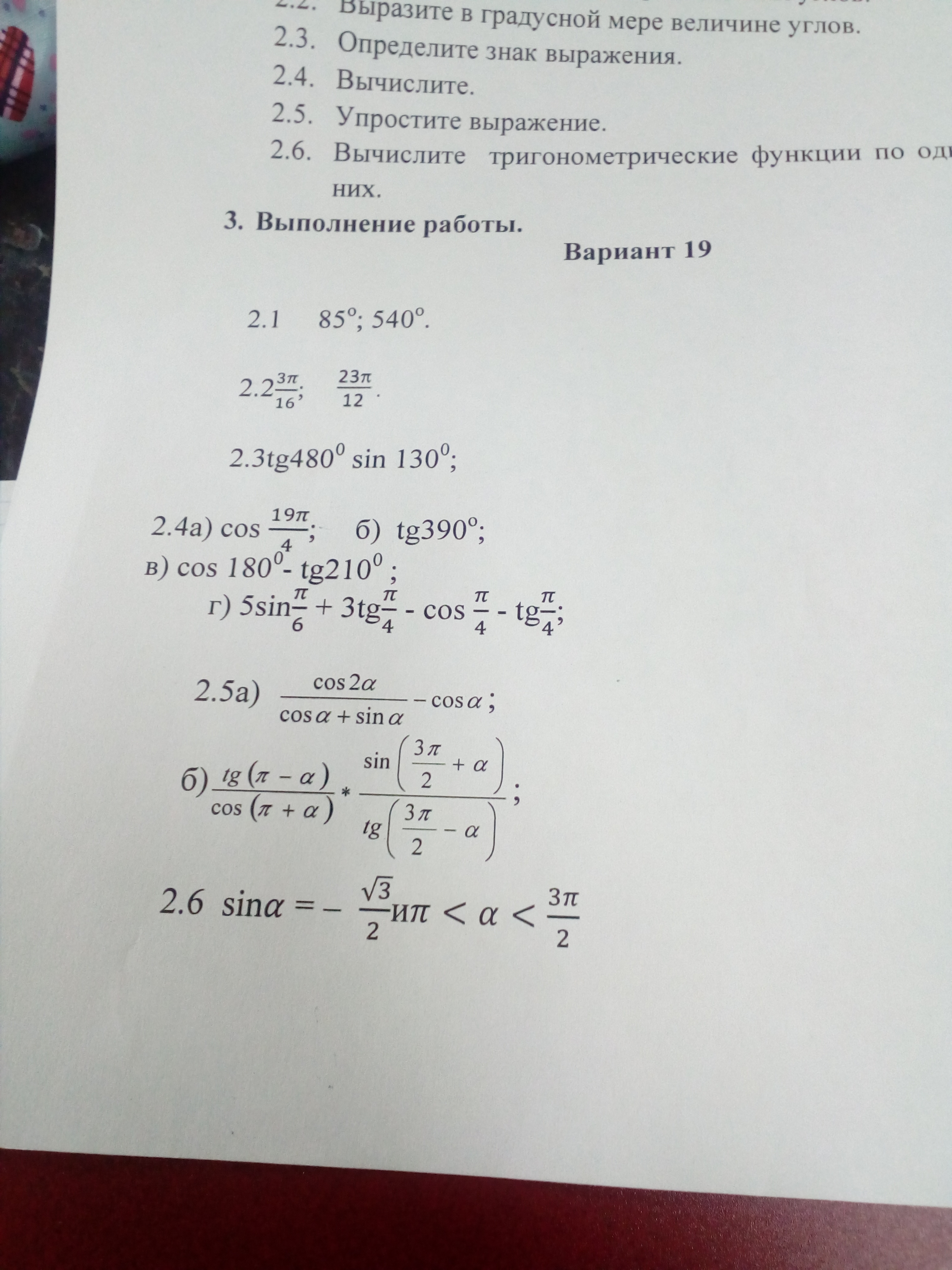 Косинус 19пи/4 = косинус (19пи/4-16пи/4) = косинус 3пи/4 = - корень из двух делить на 2