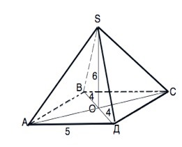 Диагонали ромба АВСД пересекаются в точке О. SA- перпендикуляр к плоскости ромба,SO= 6см,АВ=5см,ВД=8см. Найдите сторону SA