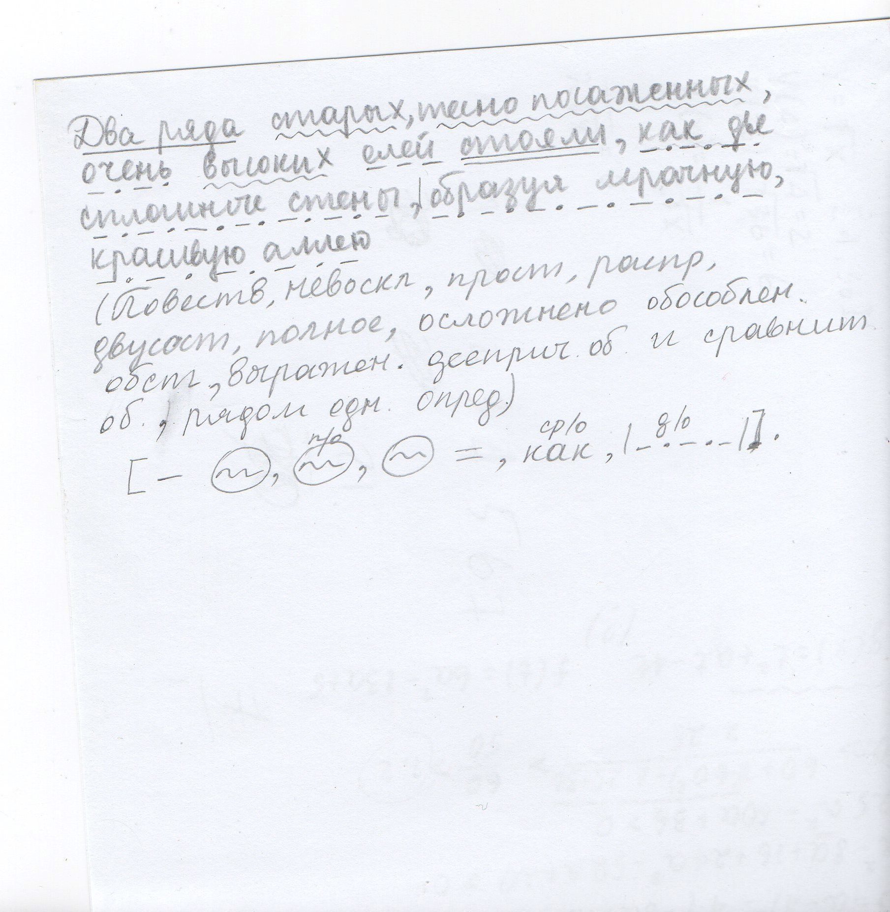 Два ряда старых, тесно посаженных, очень высоких елей стояли , как две сплошные стены , образуя мрачную красивую аллею.
