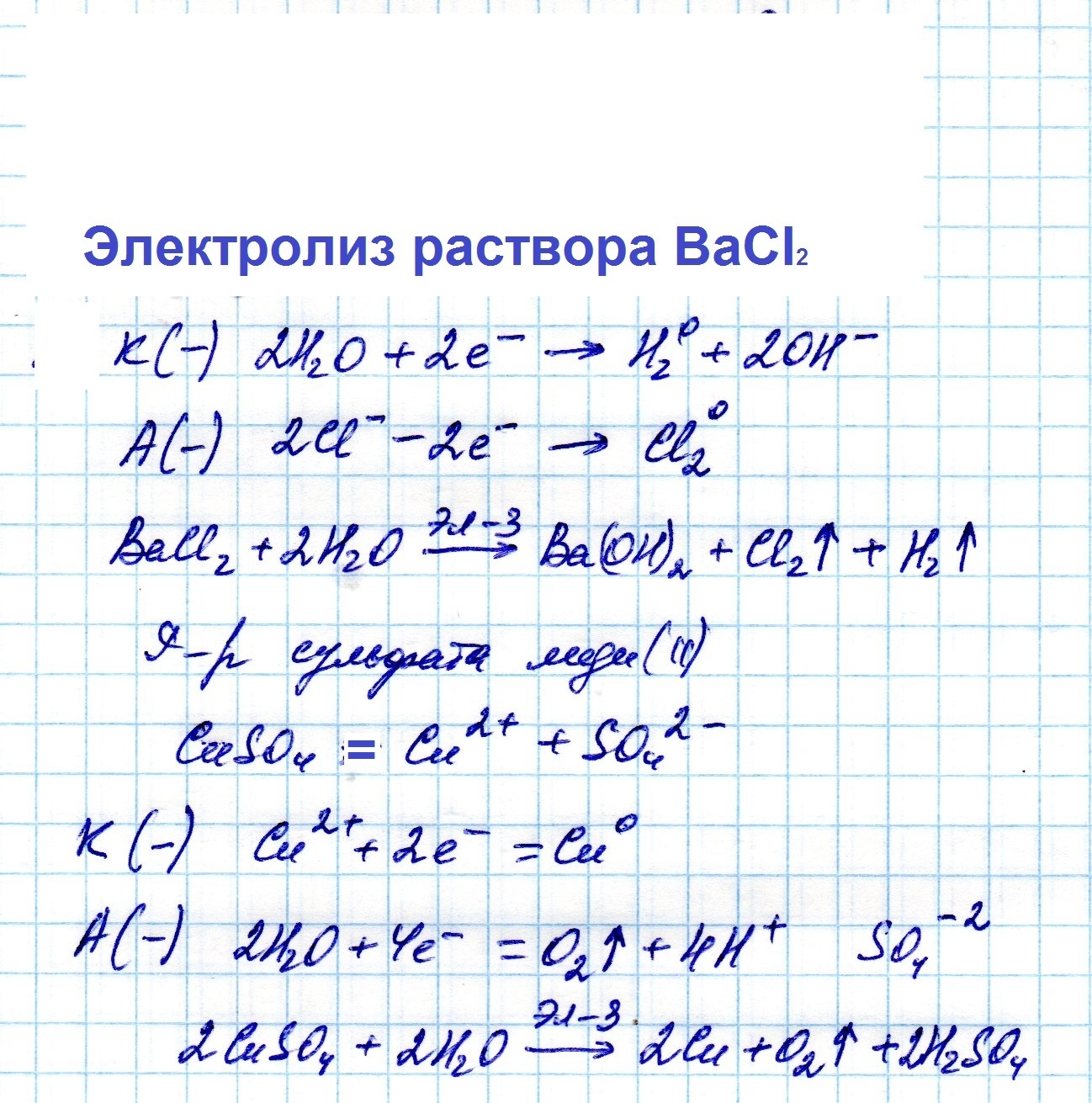К(-) Bа2+, Н2О 2Н2О+ 2е =Н2 + 2ОН-
