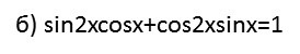 б) sin2xcosx+cos2xsinx=1