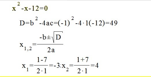 X(2 степени)-x-12=0