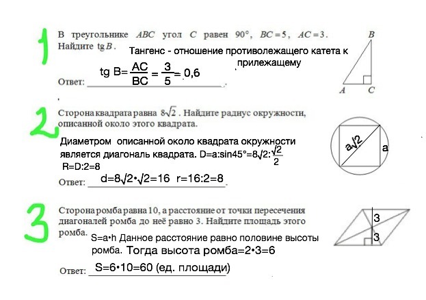 3) S = a*h (S - площади ромба, а - сторона, h - высота)