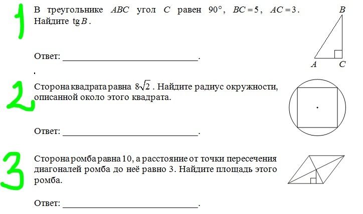 теореме Пифагора в первом задании не нужна. даны оба катета. для вычисления тангенса этого достаточно