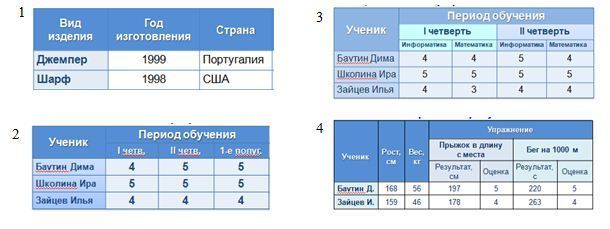 А-41 Установите соответствие между табличными моделями и их типами: