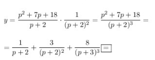 2. Представьте одну дробь с преобразованным числителем в виде суммы трёх дробей с одинаковым знаменателем (р+2)³. Числители каждой из трёх дробей будут соответственно (p+2)²; 3(p+2) и 8.