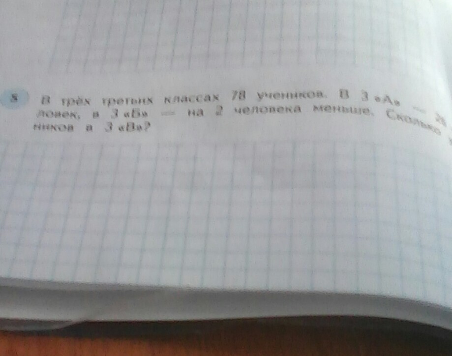 в 3 классов 78 человек в3 А 26 человек в3 Б на 2 человека меньше сколько учеников в 3 В
