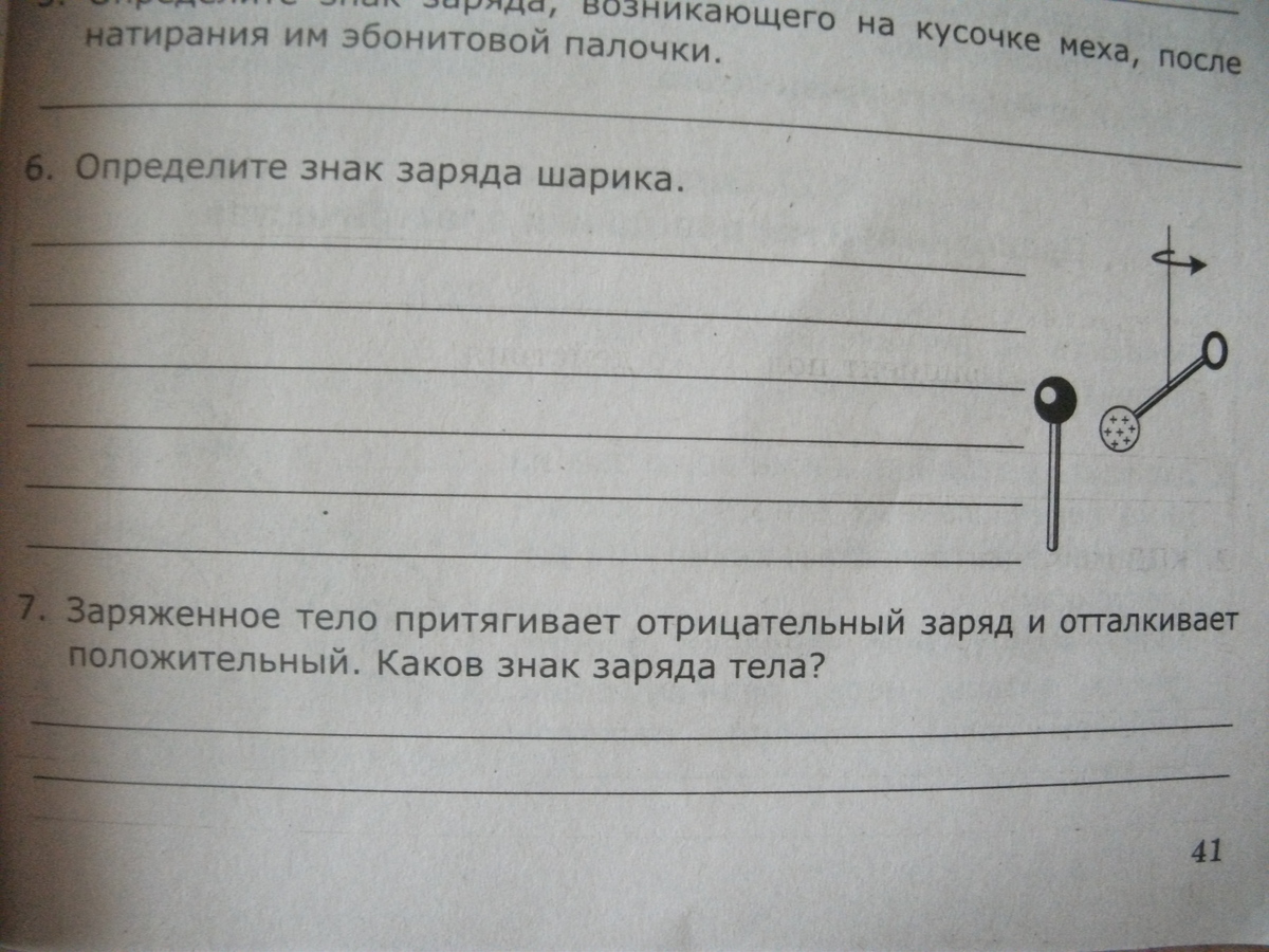7. заряд положительный. в физике положительный заряд притягивает отрицательный и наоборот. а одноименные заряды отталкиваются.