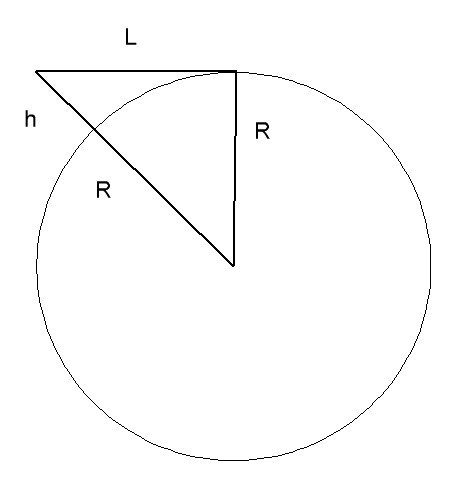 R^2+L^2=(R+h)^2