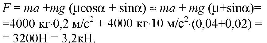 Автомобиль массой 4 т движется в гору с ускорением 0,2 мс2.Найти силу тяги, если коэффициент сопротивления равен 0,04, а угол наклона a токов, что sin a =0,02.