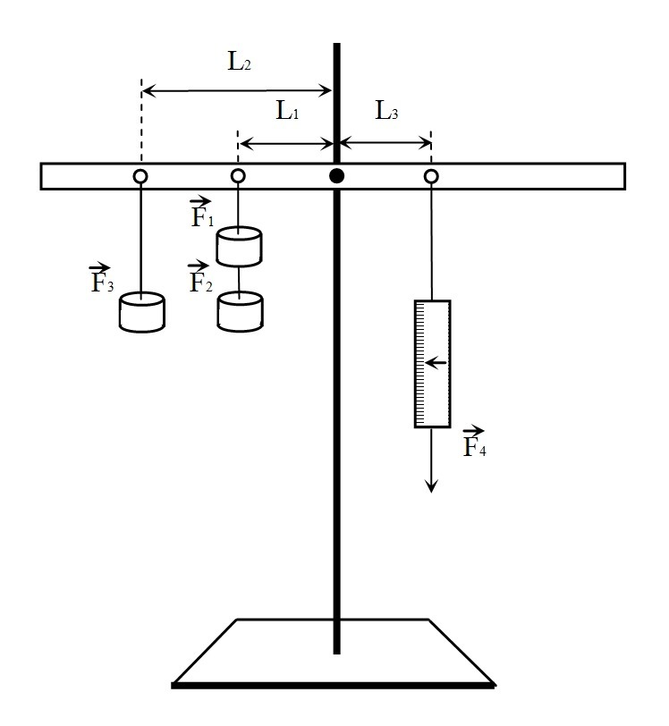 Задание ОГЭ по физике 2014 демо: Используя рычаг, три груза, штатив и динамометр, соберите установку для исследования равновесия рычага. Три груза подвесьте слева от оси вращения рычага следующим образом: два груза на расстоянии 6 см и один груз на расстоянии 12 см от оси. Определите момент силы, которую необходимо приложить к правому концу рычага на расстоянии 6 см от оси вращения рычага для того, чтобы он оставался в равновесии в горизонтальном положении.
