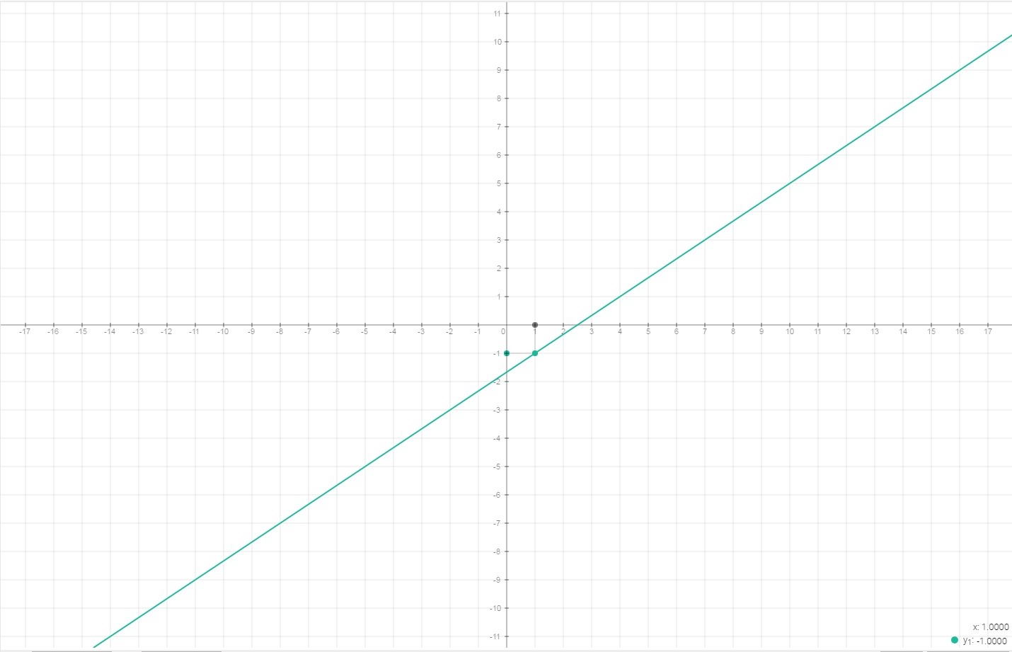 На рисунке выделены точки на оси х 1,на оси у -1,они равны по модулю ,их координаты с осью х (1;0), осью у (0;-1)