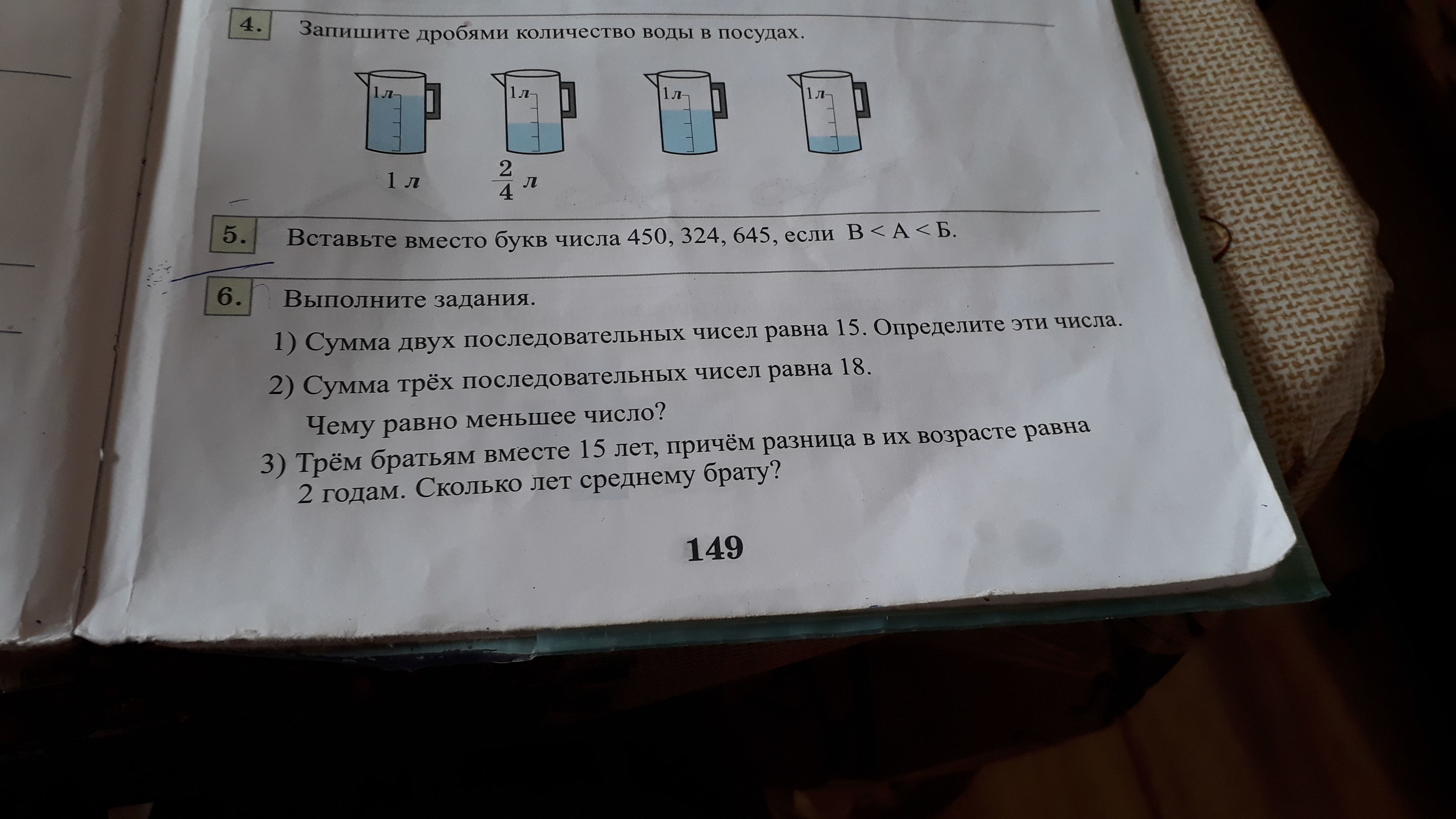 4. 1л; 2/4л; 3/4л; 1/4 л.