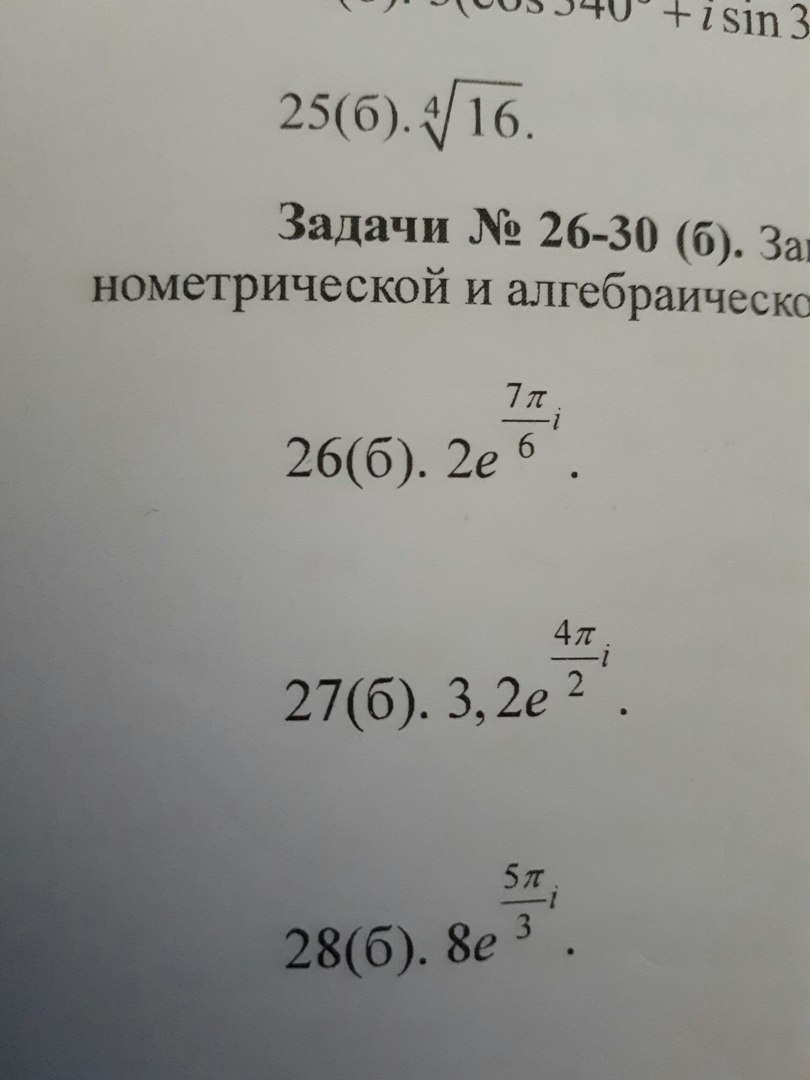 Помогите пожалуйста! Нужно записать комплексное число в тригонометрической и алгебраической формах. Задание 27(б)