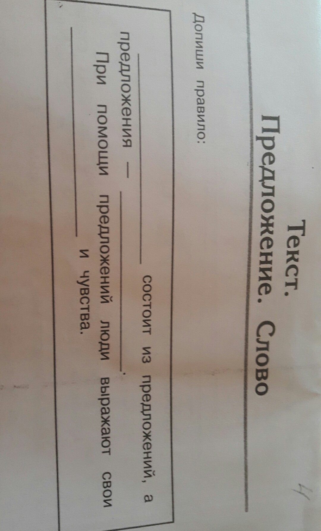 текст состоит из предложений а предложения из слов при помощи предложений люди выражают свои мысли и чувства