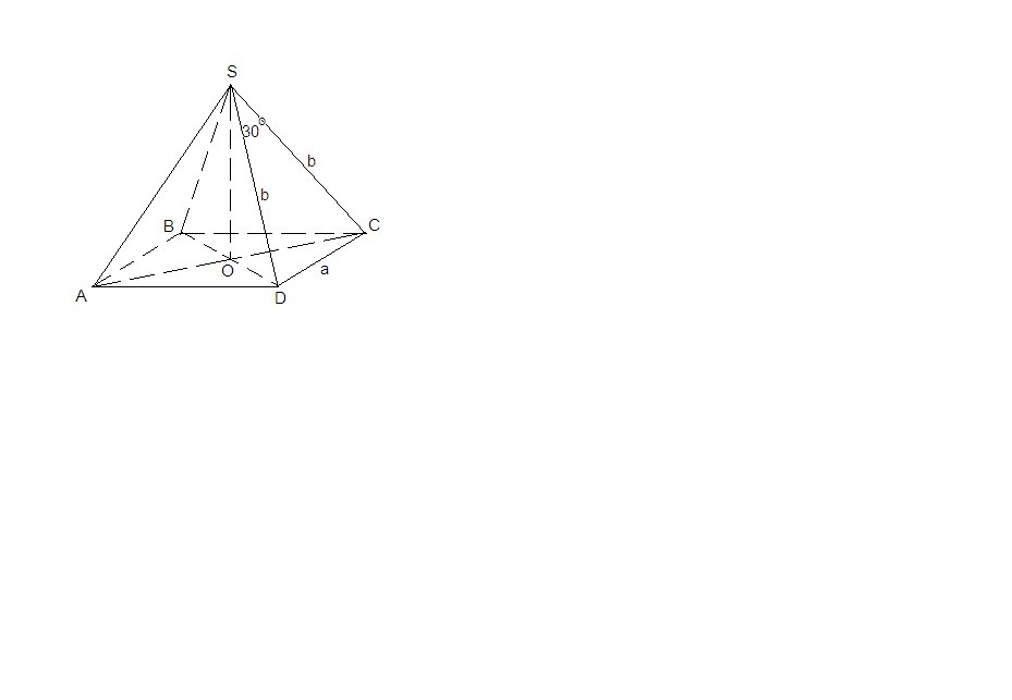 Обозначим ребро основания а, боковые ребра b.