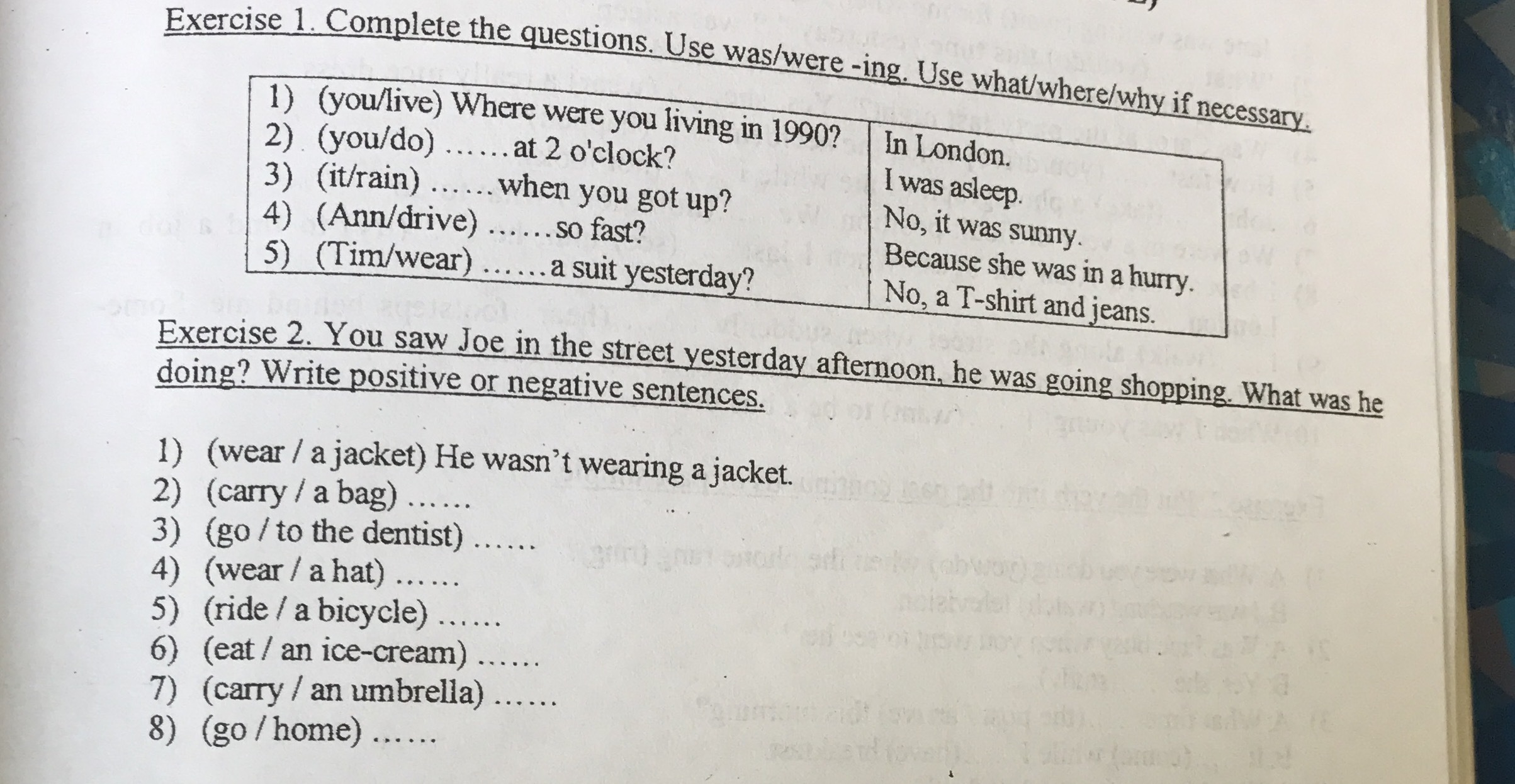1) What were you doing at 2 o'clock?