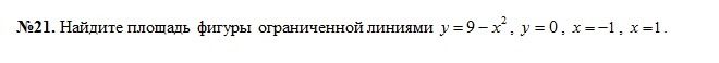 Решить задачу №21 из вложения. Найдите площадь фигуры ограниченной линиямию. Развёрнутая запись решения с объяснением