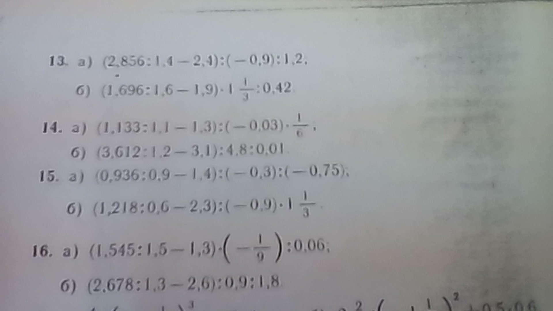 а) (1,133 : 1,1 - 1,3) : (- 0,03) * 1/6 = 1,5