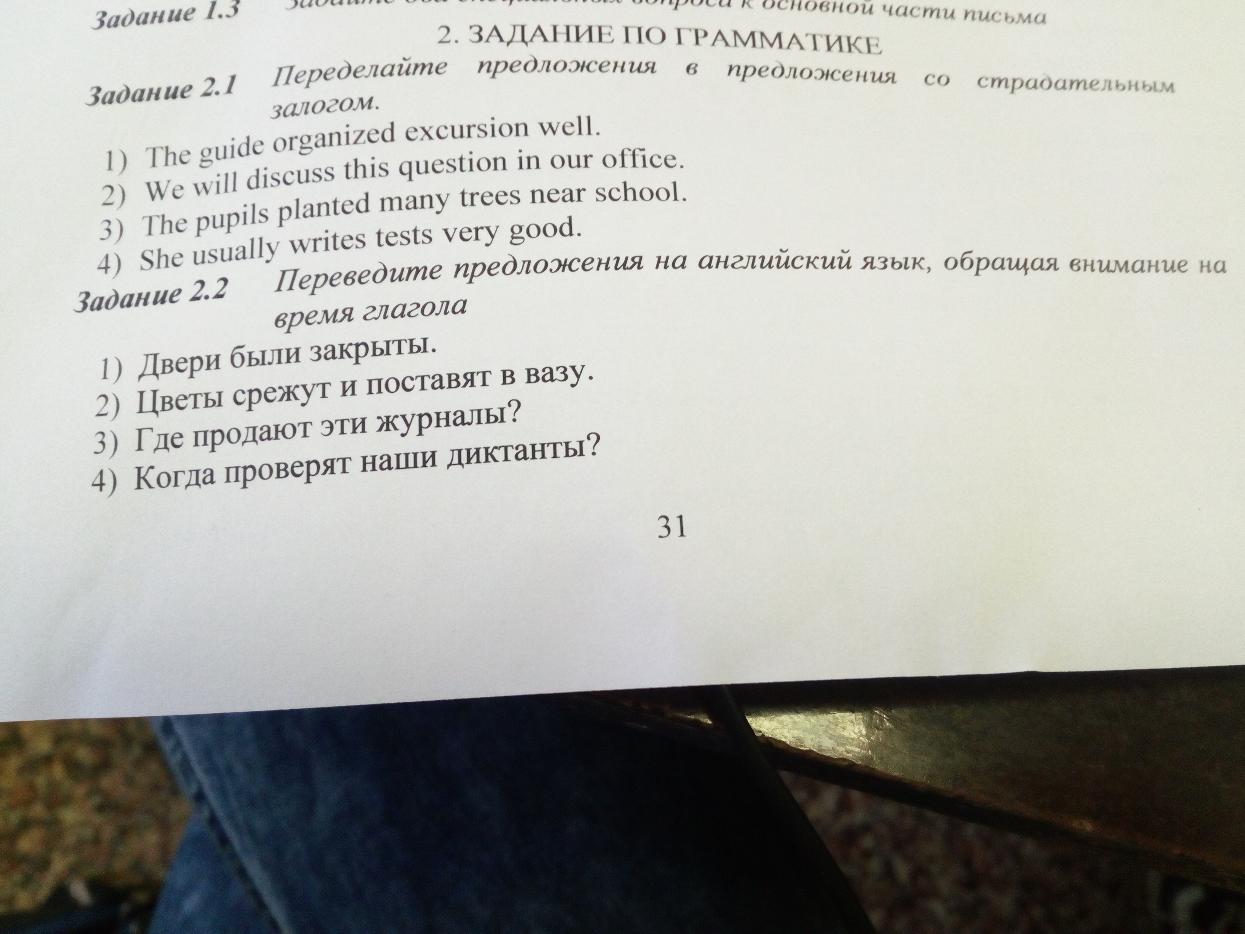 excursion was organized well.question will be discussed in our office.trees were planted near the school by pupils.usually her tests is written really good.