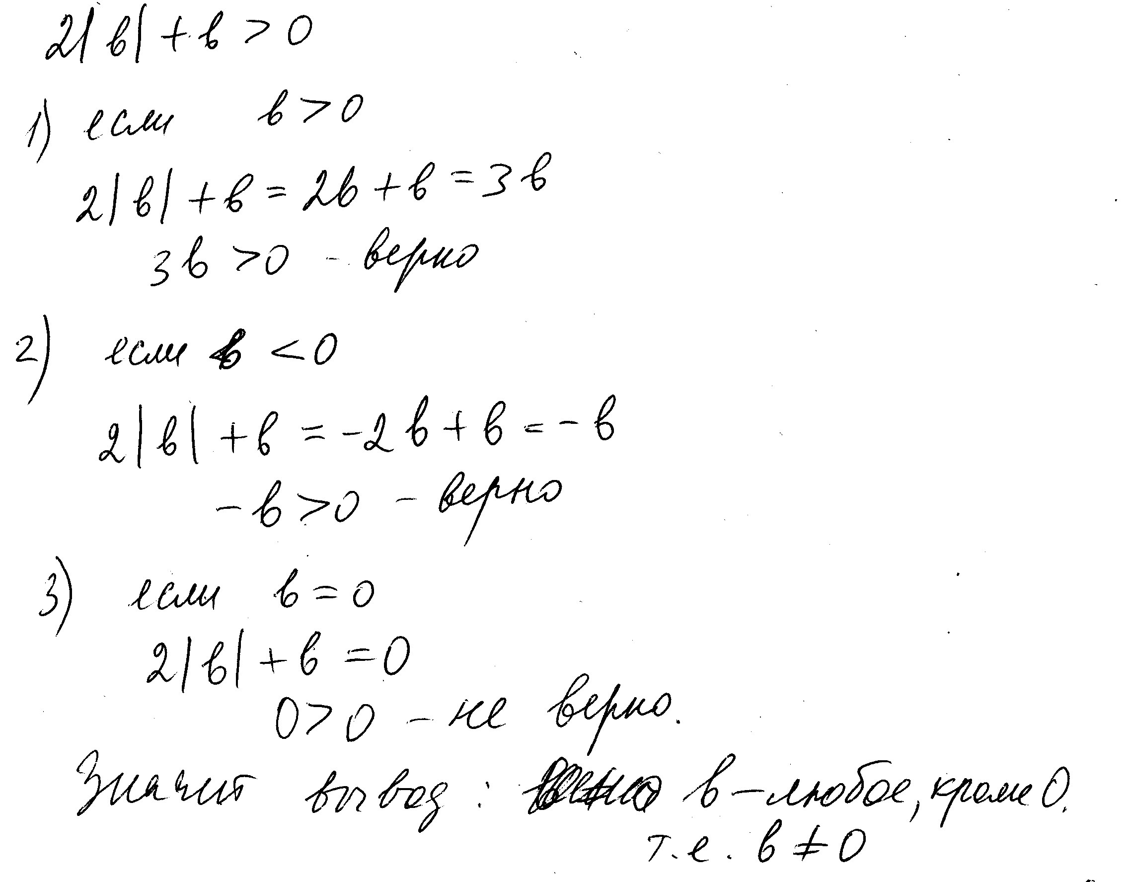 если b>0 => |b|=b =>2|b|+b=2b+b=3b>0, неравенство выполняется