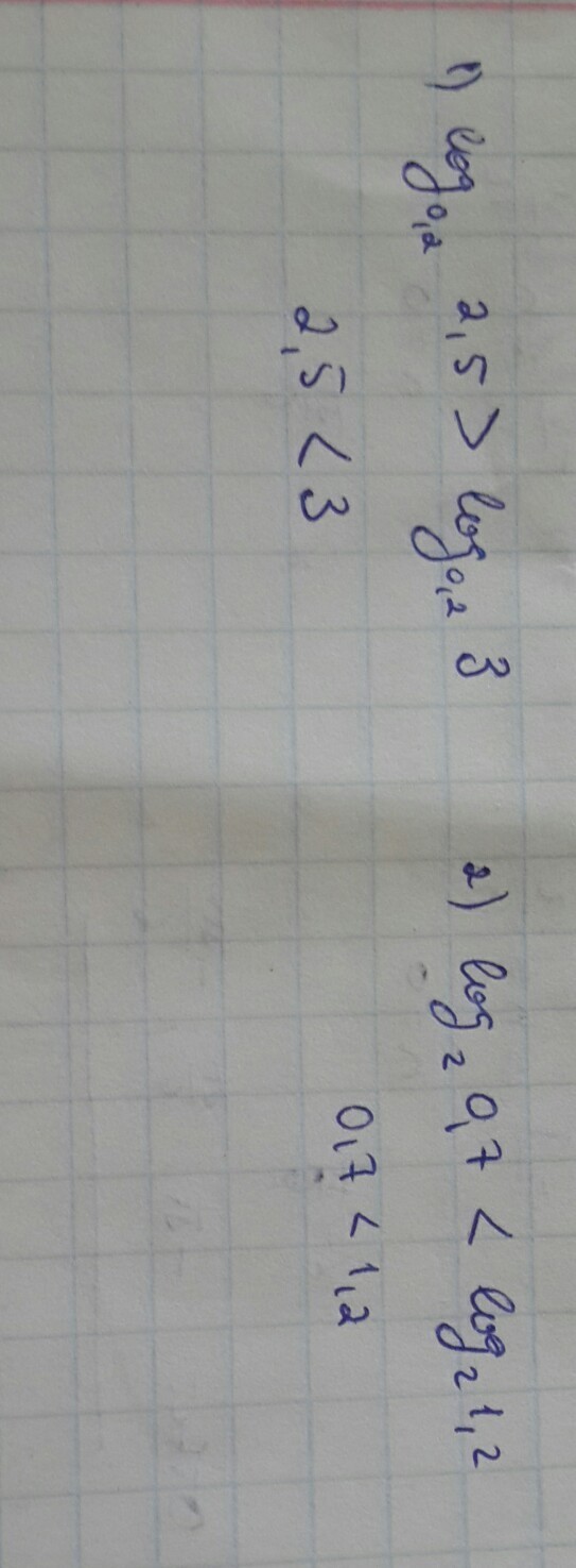 Во втором также сравниваем числа: 0.7<1.2, а так как основание 2 (больше единицы), то знак не меняется и остается таким же