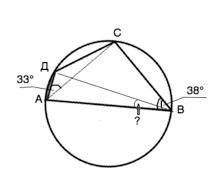 четырехугольник абсд вписан в окружность . угол абс равен 38, угол сад равен 33. найдтте угол абд.ответ дайте в гражусах