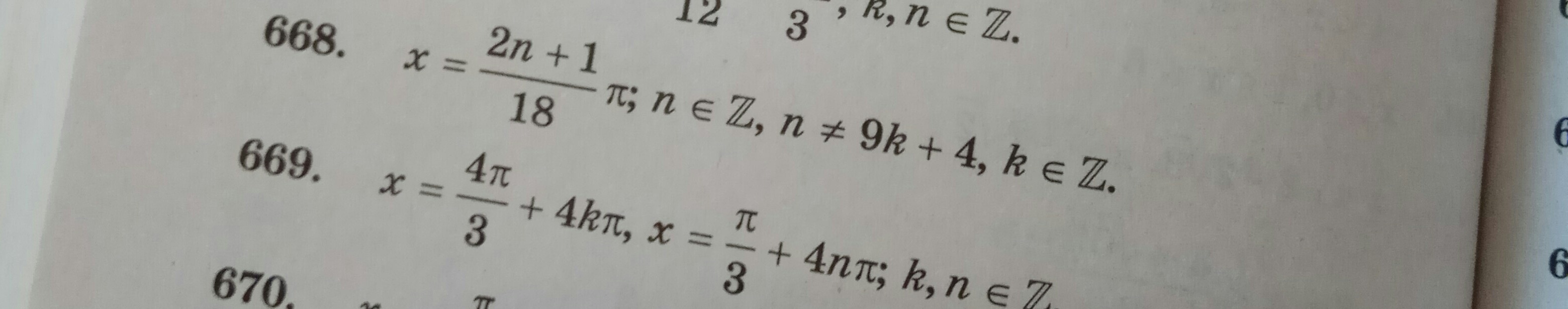 (n = 0; x = pi/18); (1; 3pi/18); (2; 5pi/18); (3; 7pi/18); (5; 11pi/18); ...