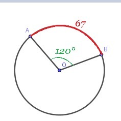 Так как ∠AOB = 120° и то на 1° припадает 67/120