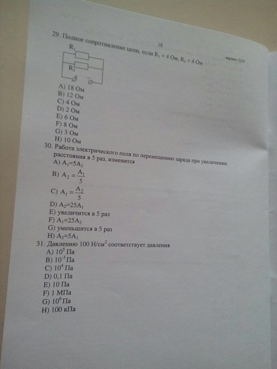 № 29 т. к. R₁ = R₂ => R = R₁ / N = 4 Ом / 2 = 2 Ом - верный ответ D)