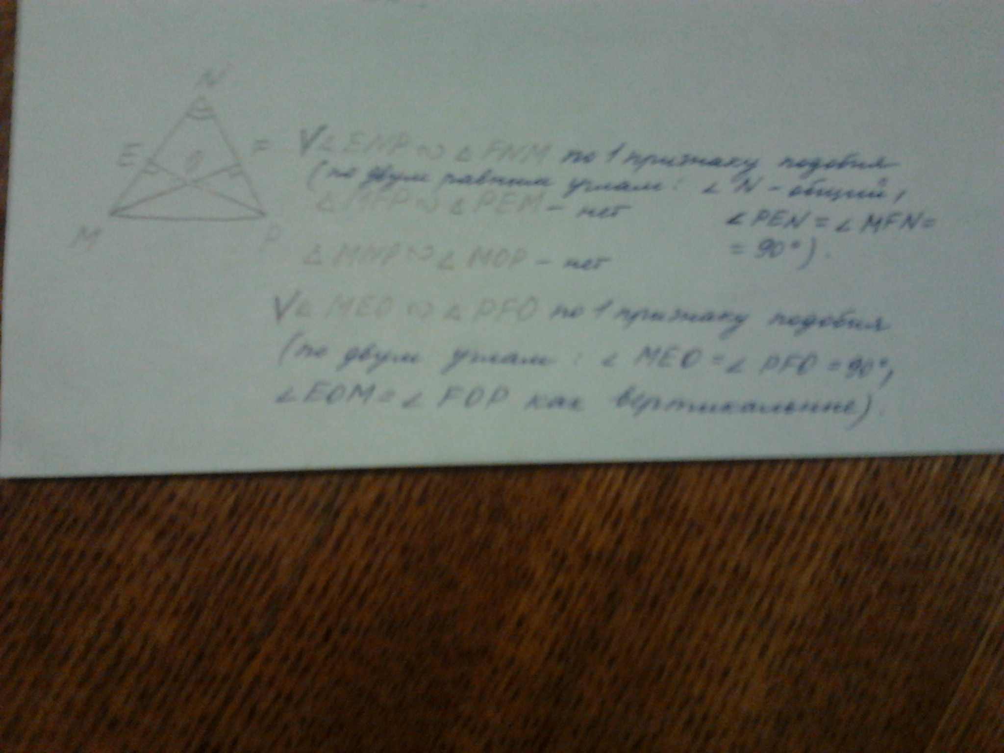 1.PE иMF-высоты треугольника MNP.MF пересекает PE в точке О.Какие из высказываний верны: а)ENP~FNM б)MFP~PEM в)MNP~MOP г)MEO~PFO