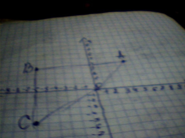 Построить треугольник вершины которого находятся в 1,2,3, четвертях. Определить координаты точек пересечения с осями координат.( если можно, то в тетради или на листочке))))