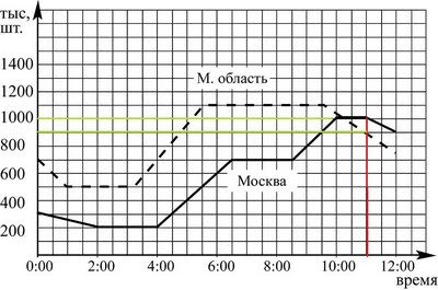 12 часов в Москве и в Московской области, по горизонтали отложено