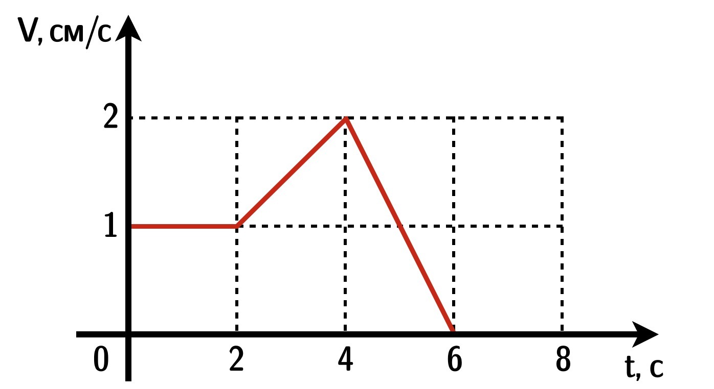 Рыжий муравей Джек ползёт по прямой линии в поисках пищи. Его скорость V меняется от времени t по закону, изображённому на рисунке.