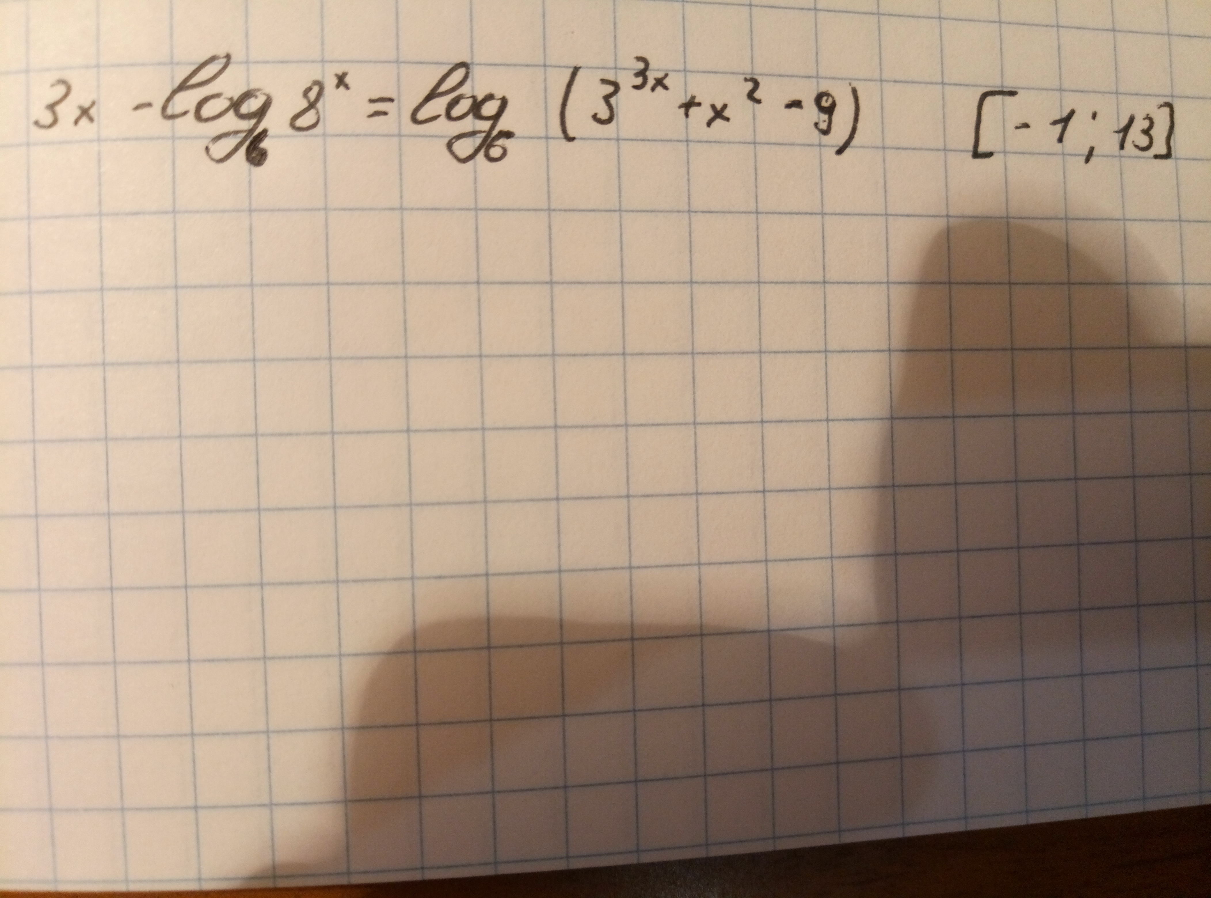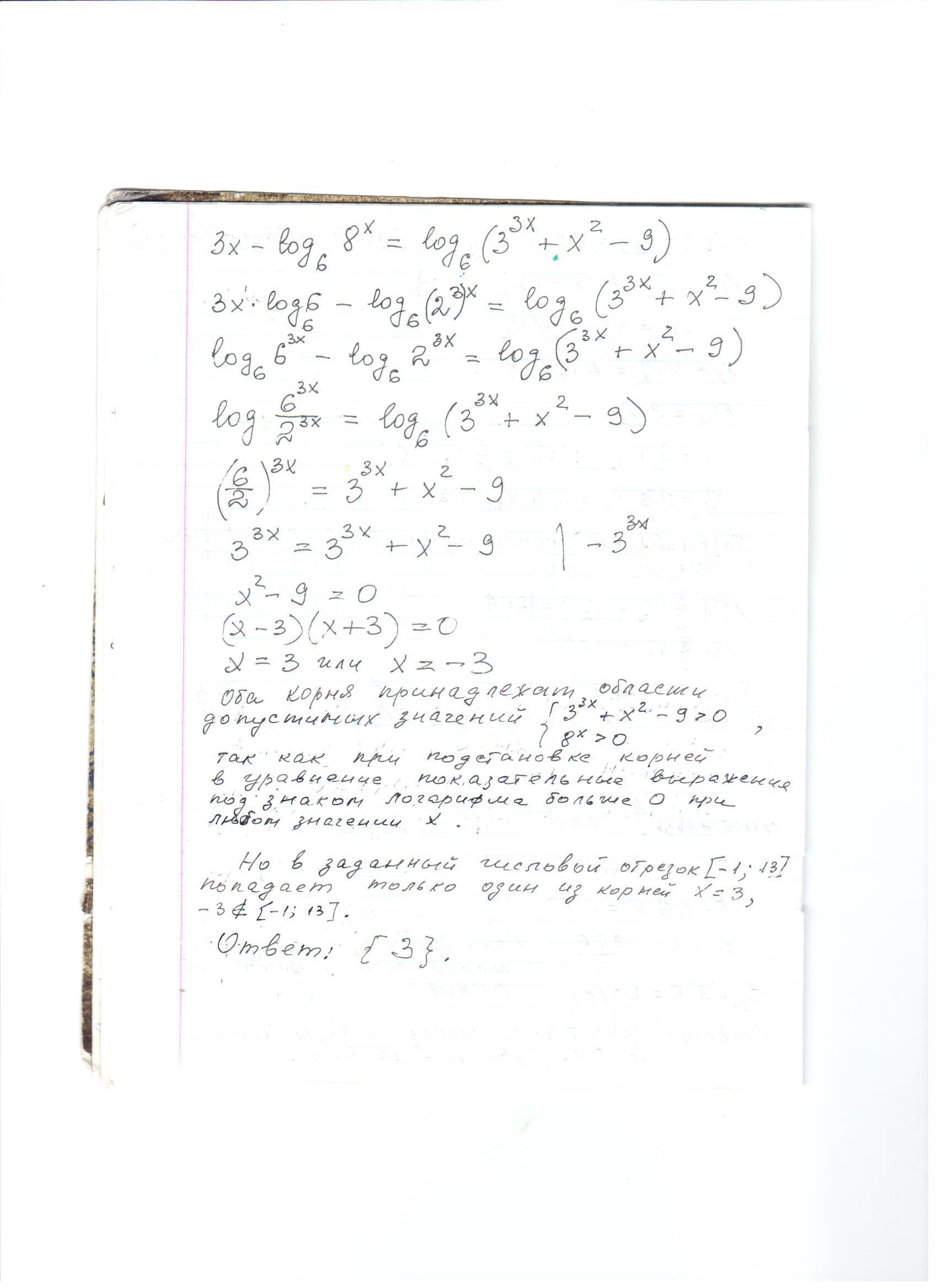 3x - 3x · log₆2 = log₆(3³ˣ + x² - 9)
